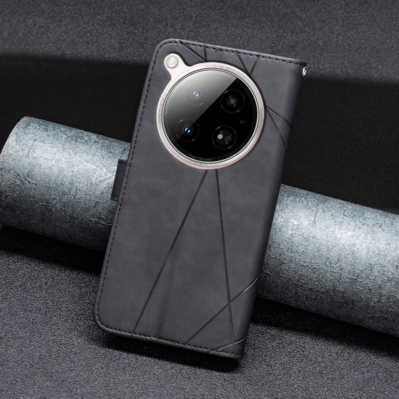 Elegant portemonnee hoesje voor Infinix Zero 40 4G dat stijl en functionaliteit combineert. Modern geometrisch ontwerp, geïntegreerde verstelbare houder, 3 kaartsleuven en veilige magnetische sluiting. Volledige bescherming tegen stoten en krassen.