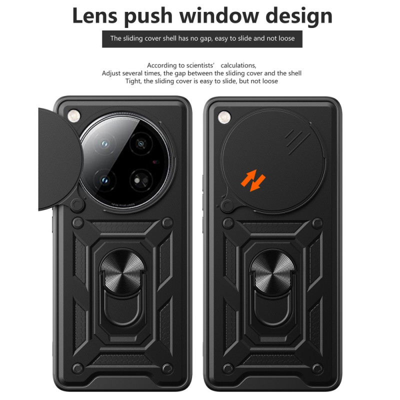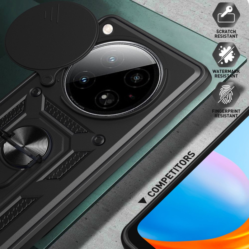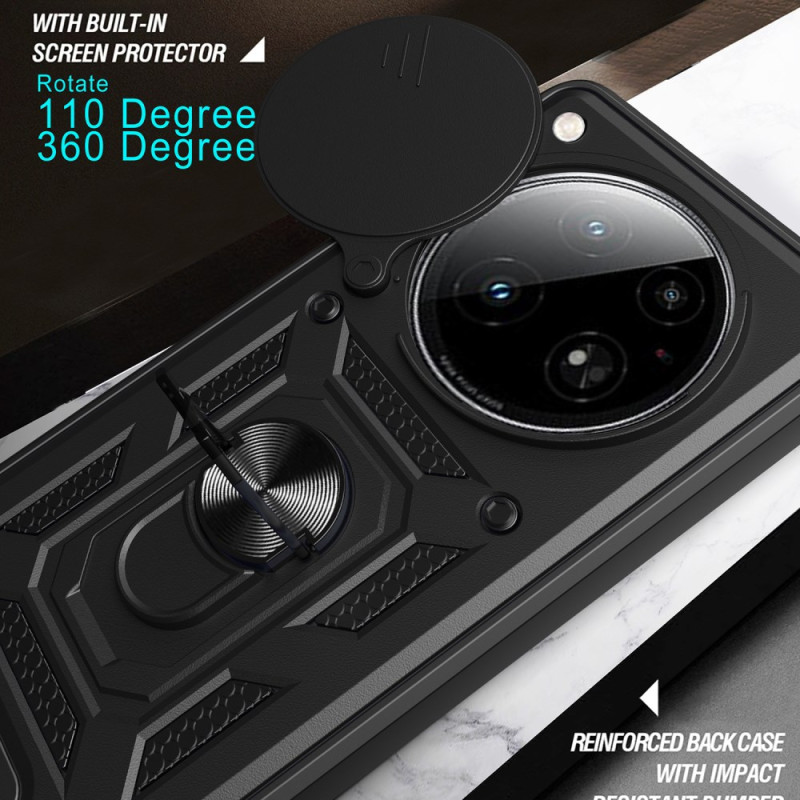 Bescherm je Infinix Zero 40 5G met deze innovatieve case met een verschuifbare cameradeksel, een geïntegreerde roterende houder en versterkte bescherming van militaire kwaliteit. Compatibel met magnetische autohouders.