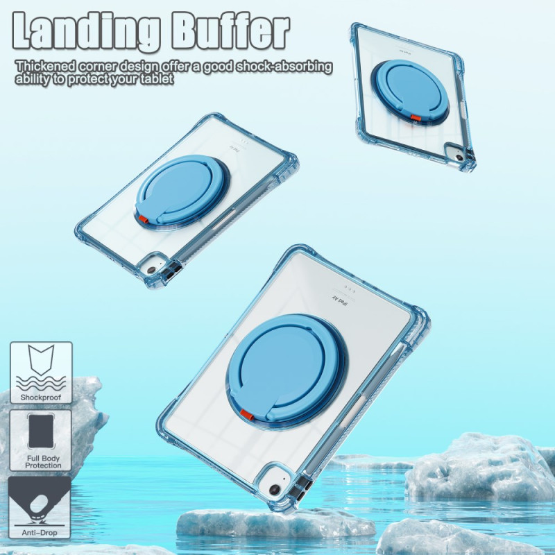 Ontdek onze veelzijdige hoes voor iPad Air 11 (2025) (2024)/Air (2022) (2020)/ Pro 11 (2022) (2021) (2020) (2018), met een 360° draaibare handgreep, volledige bodybescherming, schokabsorberende hoeken, verstelbare standaard, transparante acrylrug en verstelbare nylon schouderriem.