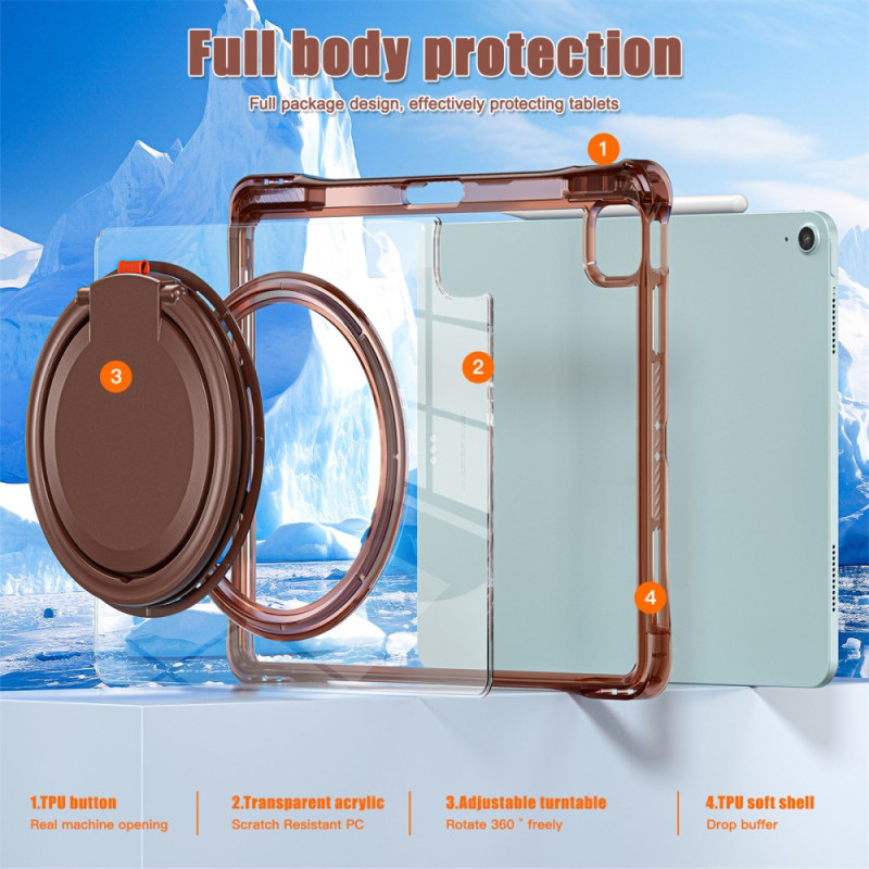 De transparante acryl achterkant verfraait het ontwerp van je tablet en biedt robuuste bescherming tegen stoten en dagelijkse slijtage.