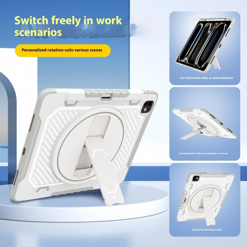 Ontdek onze beschermhoes voor iPad Pro 13 (2025) / 13 (2024), die duurzaamheid en functionaliteit combineert. Hij is gemaakt van PC en TPU en biedt maximale bescherming tegen stoten en krassen. De geïntegreerde standaard zorgt voor comfortabel kijken en de stylussleuf is praktisch.