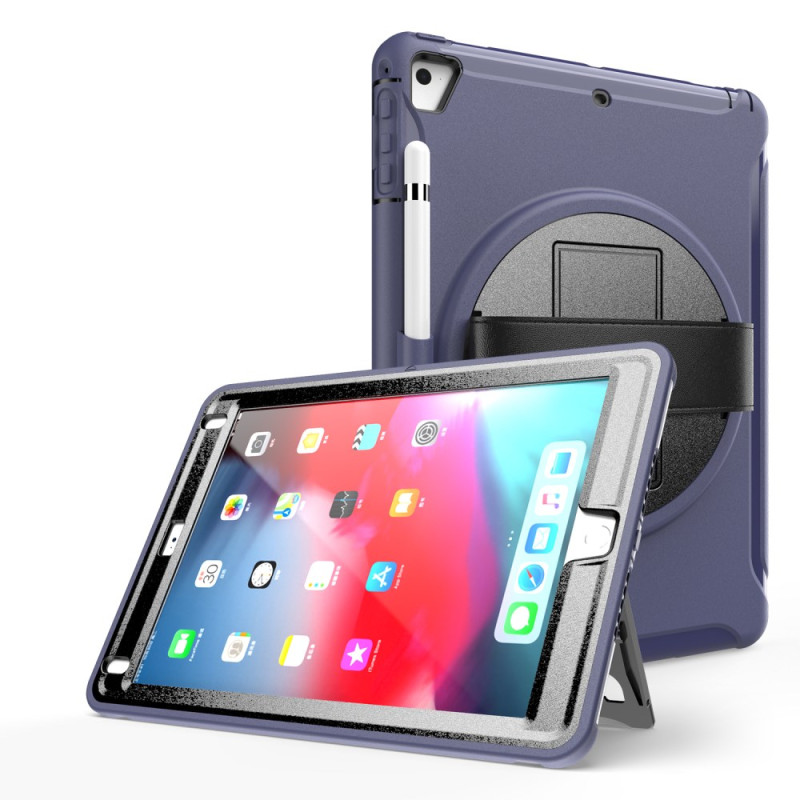 Protection complète pour iPad( 9.7 pouces) / iPad Pro 9.7 pouces / iPad Air / iPad Air 2 avec support pivotant 360°, sangle main ajustable et emplacement stylet. Conception robuste en PC et TPU avec doublure intérieure en mousse pour une protection optimale contre les chocs et les rayures au quotidien.
