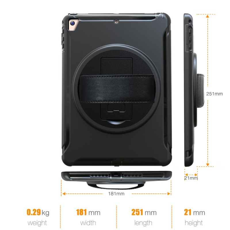 Protégez votre iPad( 9.7 pouces) / iPad Pro 9.7 pouces / iPad Air / iPad Air 2 avec cette coque robuste tout-en-un. Son support rotatif 360° offre une flexibilité optimale en mode portrait ou paysage. La sangle ajustable assure une prise en main confortable et sécurisée pour tous vos déplacements.