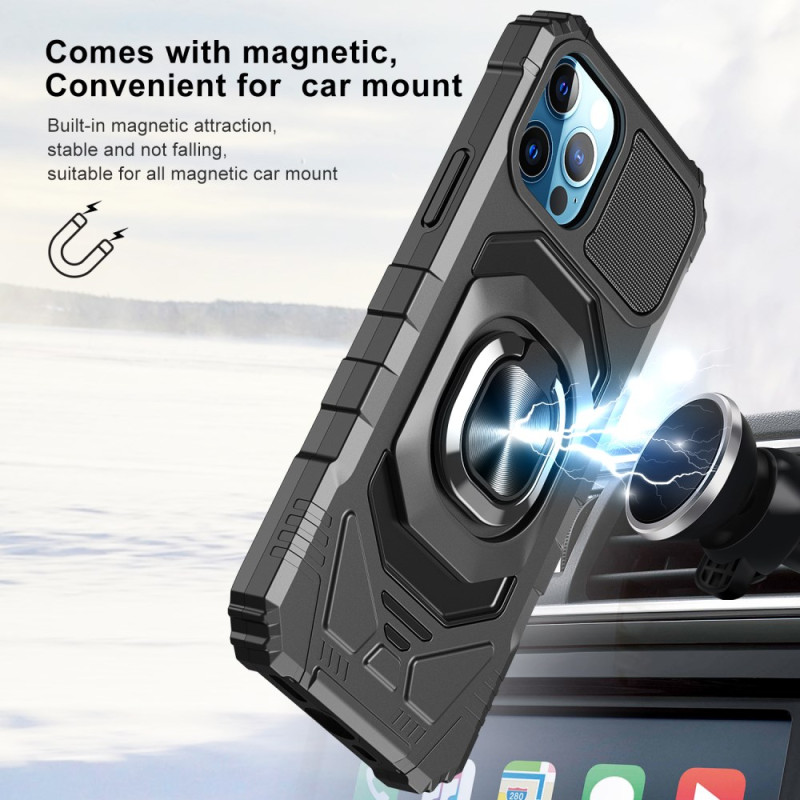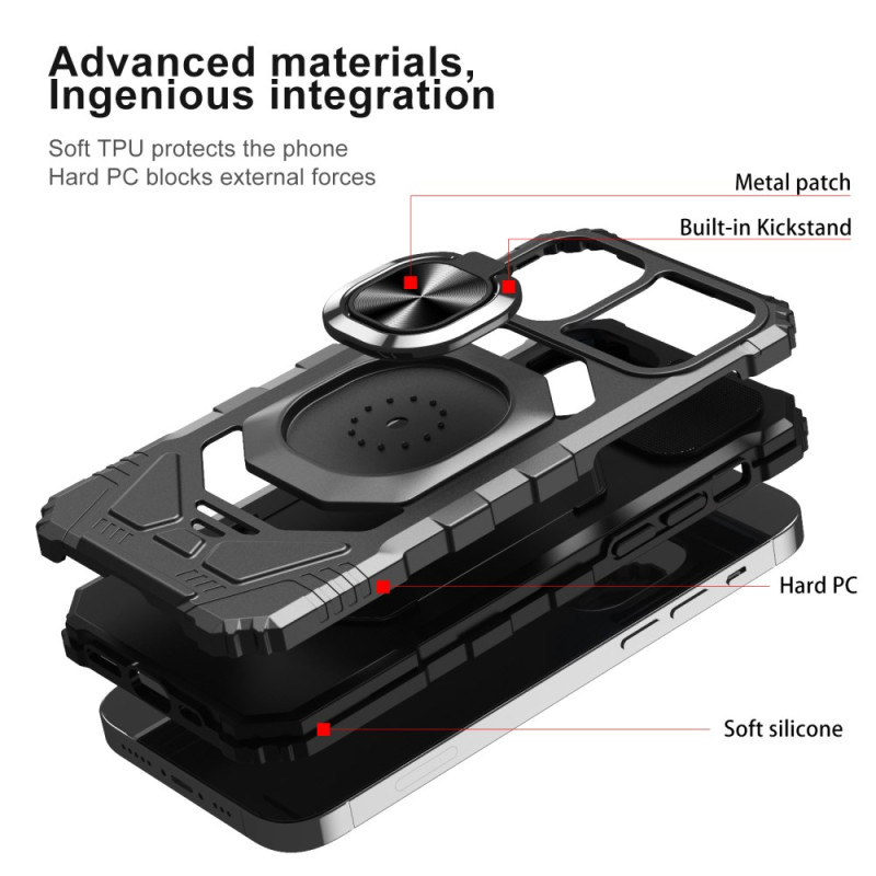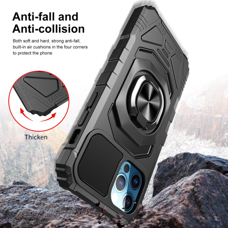 Cette coque hybride pour iPhone 12 / 12 Pro est dotée d'un design de support intégré et d'une technologie d'absorption des chocs.
