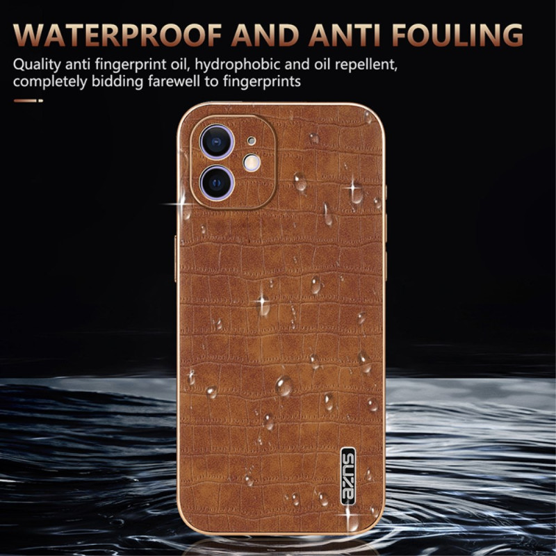 Ontdek onze elegante hoes voor iPhone 12 met een verfijnde krokodillenstructuur. Hij is gemaakt van TPU en PU-leer van hoge kwaliteit en biedt uitzonderlijke schokbescherming terwijl hij toch slank en licht blijft. Het luxe ontwerp en de gegalvaniseerde afwerking geven je toestel een vleugje stijl.
