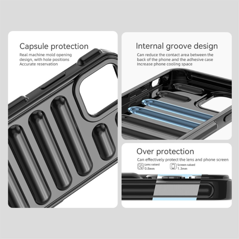 Ontdek onze Capsule Series hoes voor iPhone 12, ontworpen voor optimale bescherming. Hij is gemaakt van TPU van hoge kwaliteit en biedt flexibiliteit en duurzaamheid. Het unieke geribbelde capsule-ontwerp verbetert de grip en valbestendigheid, en zorgt tegelijkertijd voor een uitstekende warmteafvoer.
