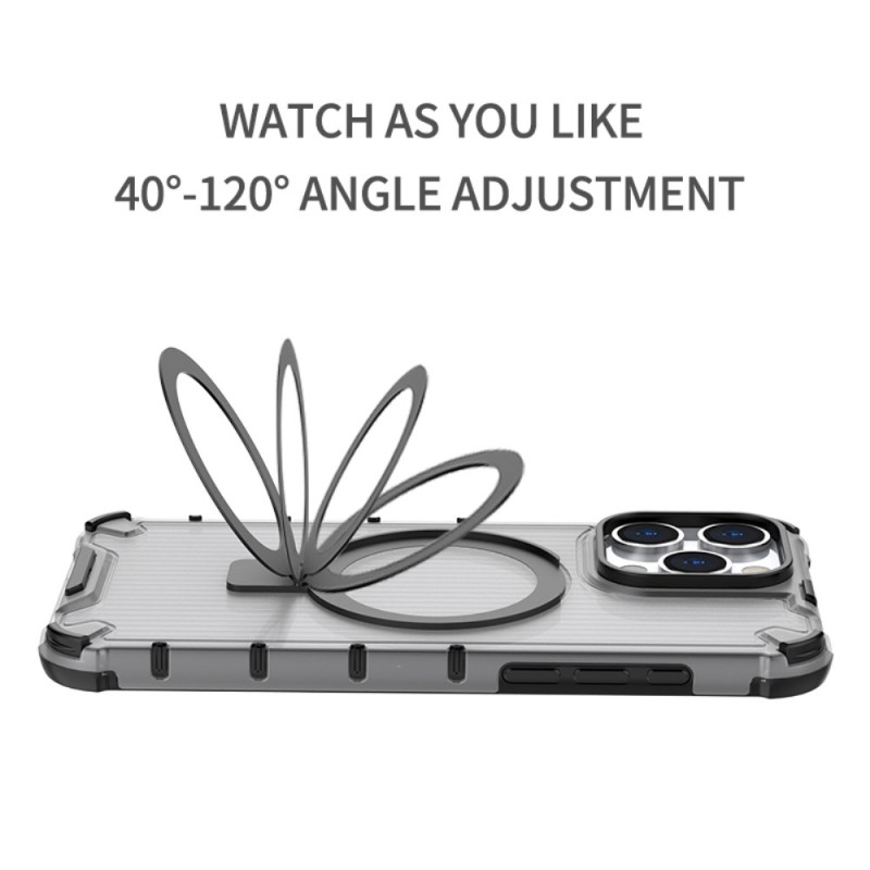 Sa béquille métallique ajustable de 40 à 120 degrés permet un visionnage mains libres confortable. Compatible avec la charge sans fil MagSafe, elle offre une forte adsorption magnétique sans avoir à retirer l'étui. Ses coins renforcés assurent une protection exceptionnelle contre les chutes et les impacts. Les découpes précises garantissent un accès facile à tous les ports et boutons. Profitez d'une protection maximale sans compromettre la fonctionnalité de votre iPhone.