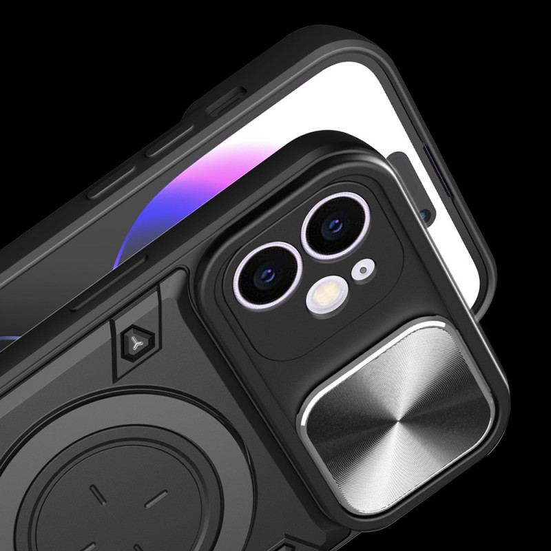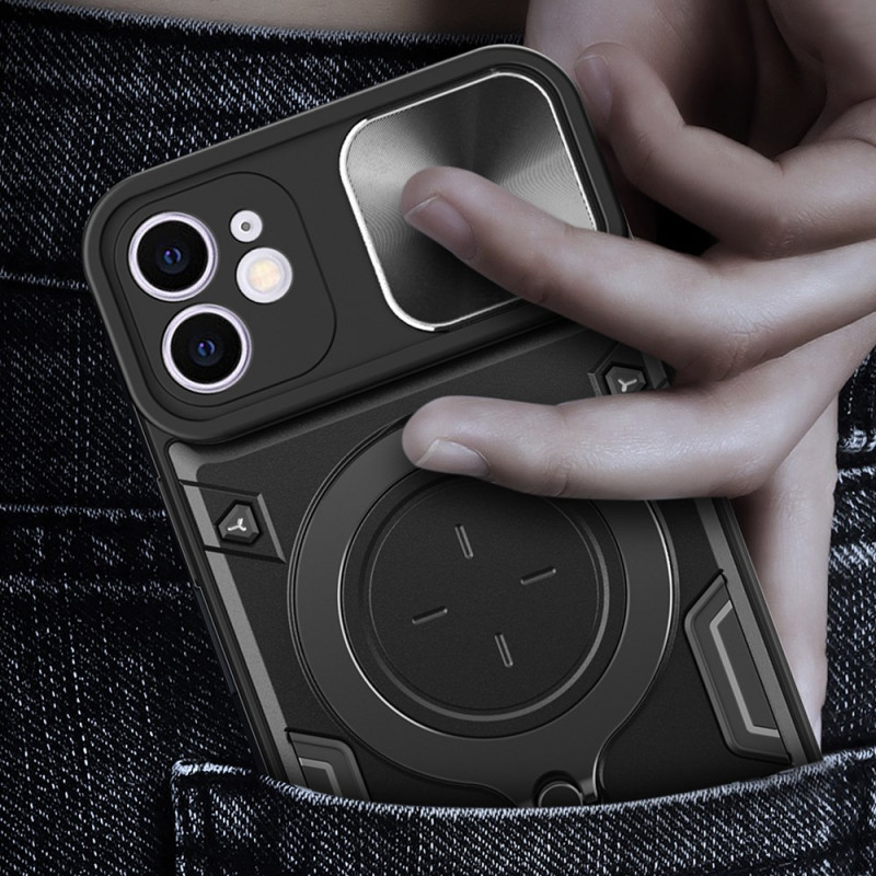 Ontdek onze innovatieve beschermhoes voor iPhone 12. Met een schuifdeksel voor de camera en een 360° draaibare steun combineert deze case functionaliteit en veiligheid. Hij is gemaakt van TPU en kunststof en biedt optimale bescherming tegen stoten en krassen.