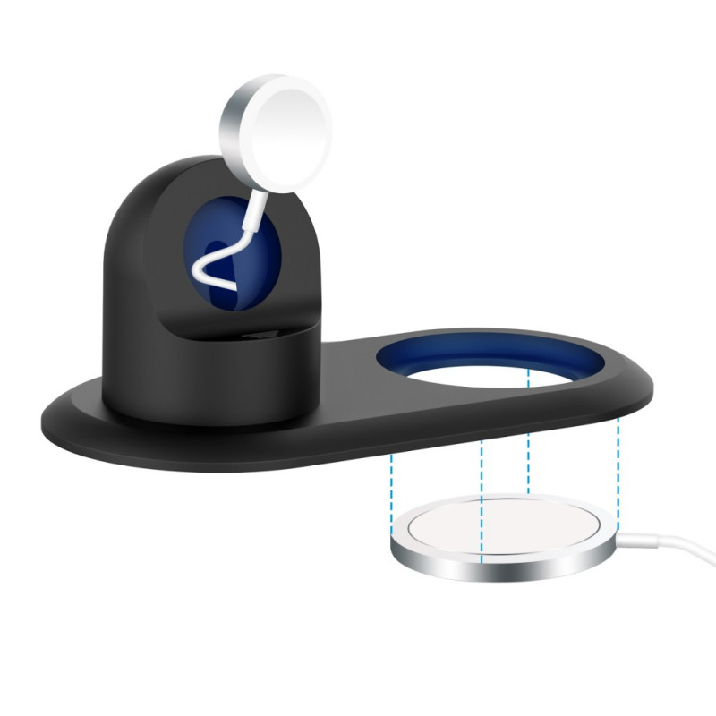 Simple et pratique, le support fait office de station de chargement MagSafe est adapté au portable et à la montre intelligente.