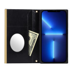 Ontdek deze stijlvolle portemonneehoes voor iPhone 13 mini 5,4 inch. Met een geïntegreerde spiegel, kaart- en geldgleuven en een standaardfunctie. Geraffineerd ontwerp met textuur en praktische handriem voor eenvoudig dagelijks gebruik.