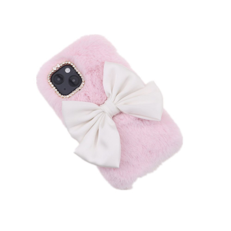 Bescherm je iPhone 13 Mini in stijl met deze schattige zachte pluche hoes versierd met fonkelende strass-steentjes en een strikje. Hij combineert comfort en elegantie en biedt optimale bescherming terwijl hij je telefoon verandert in een echt zacht aanvoelend modeaccessoire.