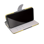 Bescherm je iPhone 13 Mini in stijl met deze stijlvolle flipcase. Het unieke ontwerp met geel en zwart paneelpatroon geeft je smartphone een stoer tintje. Voorzien van een geïntegreerde standaard voor handsfree kijken en volledige bescherming.