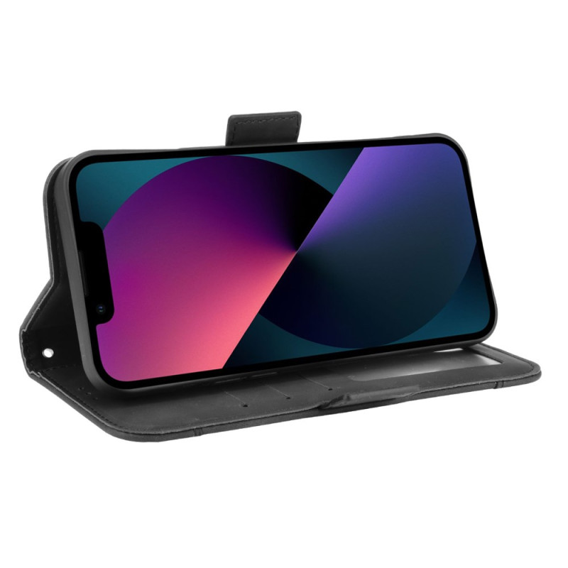 Ontdek deze elegante wallet case voor de iPhone 13 Mini die volledige bescherming combineert met praktisch nut. Met meerdere kaartsleuven, een dubbele magneetsluiting en een geïntegreerde standaard maakt hij het dagelijks leven gemakkelijker en beschermt hij je telefoon tegen stoten en krassen.