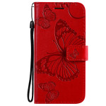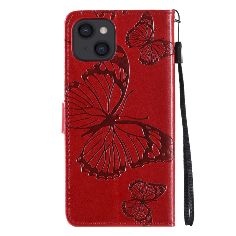 Eersteklas PU-leren portemonneehoesje voor iPhone 13 Mini met elegant gegraveerd vlindermotief. Inclusief 2 kaartsleuven, zijvak, handsfree functie en praktische handriem voor complete, stijlvolle bescherming.