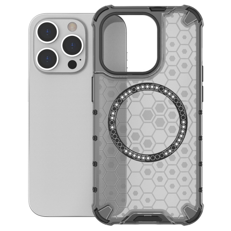 Protégez votre iPhone 13 Pro avec cette coque magnétique au design alvéolé élégant. Construction hybride offrant une protection optimale contre les chocs et les rayures. Compatible MagSafe avec anneau magnétique intégré pour une charge sans fil facile.