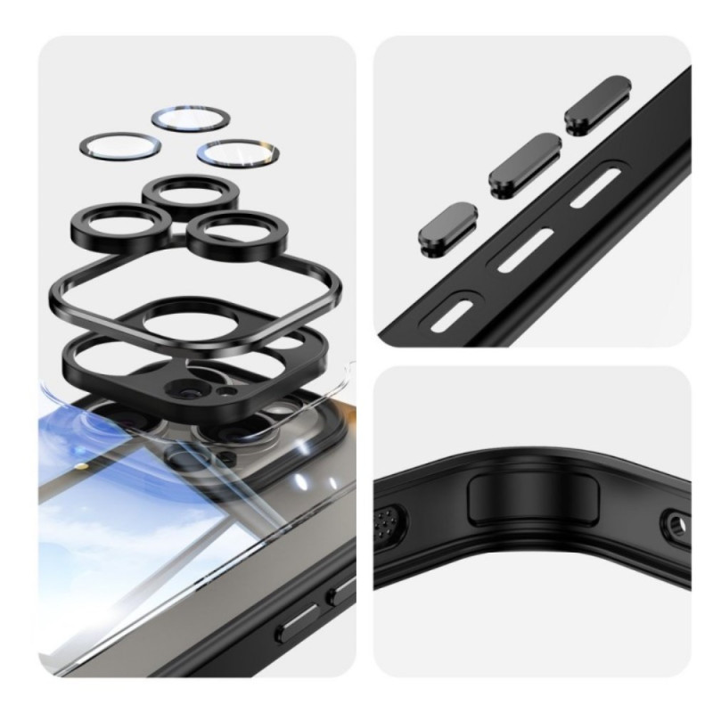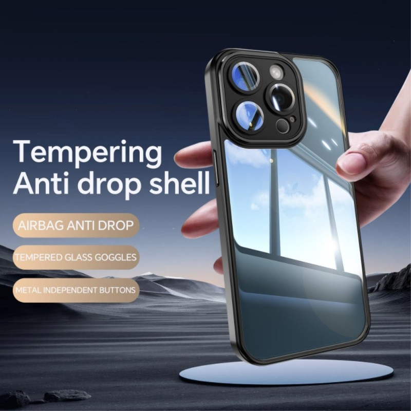 Complete 2-in-1 bescherming voor je iPhone 13 Pro Max: schokbestendige transparante TPU case met airbagontwerp en gehard glas met hoge definitie. Onafhankelijke metalen knoppen en integrale bescherming voor de fotolens voor maximale veiligheid.