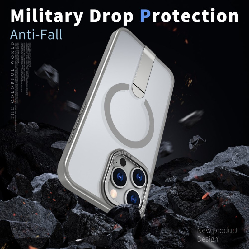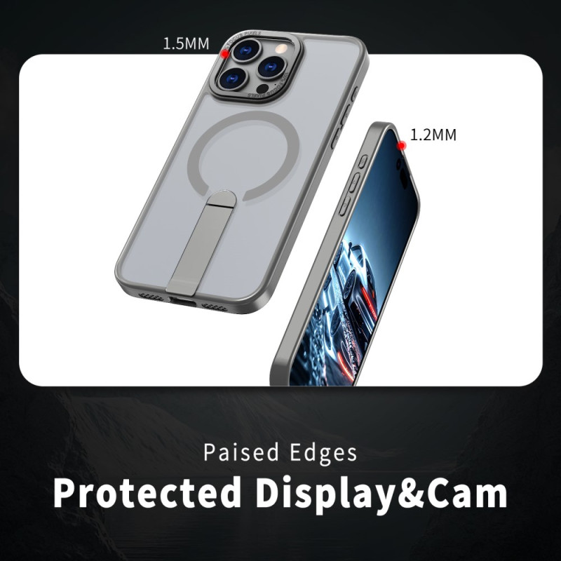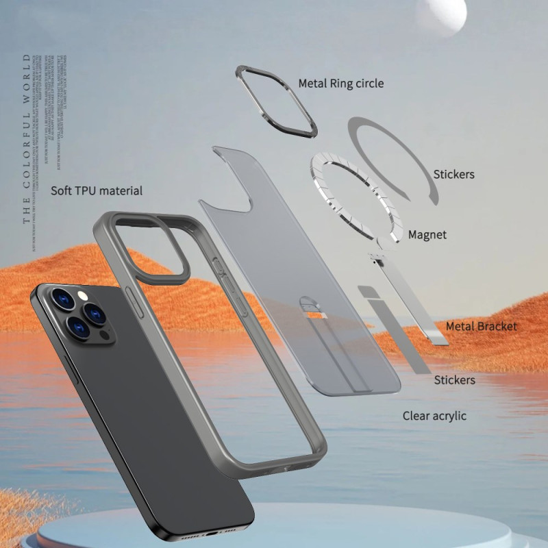 Protégez votre iPhone avec style grâce à cette coque hybride compatible MagSafe. Dotée d'une béquille intégrée double orientation et d'un anneau magnétique puissant (1500g), elle offre une protection optimale avec ses bords surélevés tout en conservant un profil élégant.