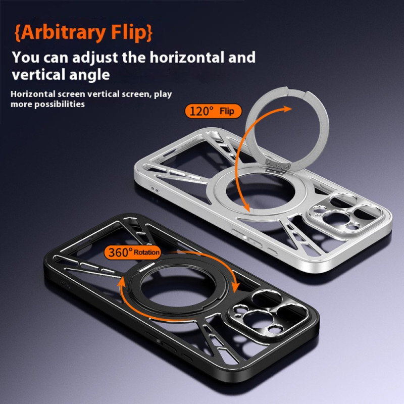 Bescherm je iPhone 13 Pro Max met deze innovatieve case met een geïntegreerde roterende standaard, MagSafe magnetische compatibiliteit en een warmteafvoersysteem. Het versterkte ontwerp biedt optimale bescherming tegen vallen.