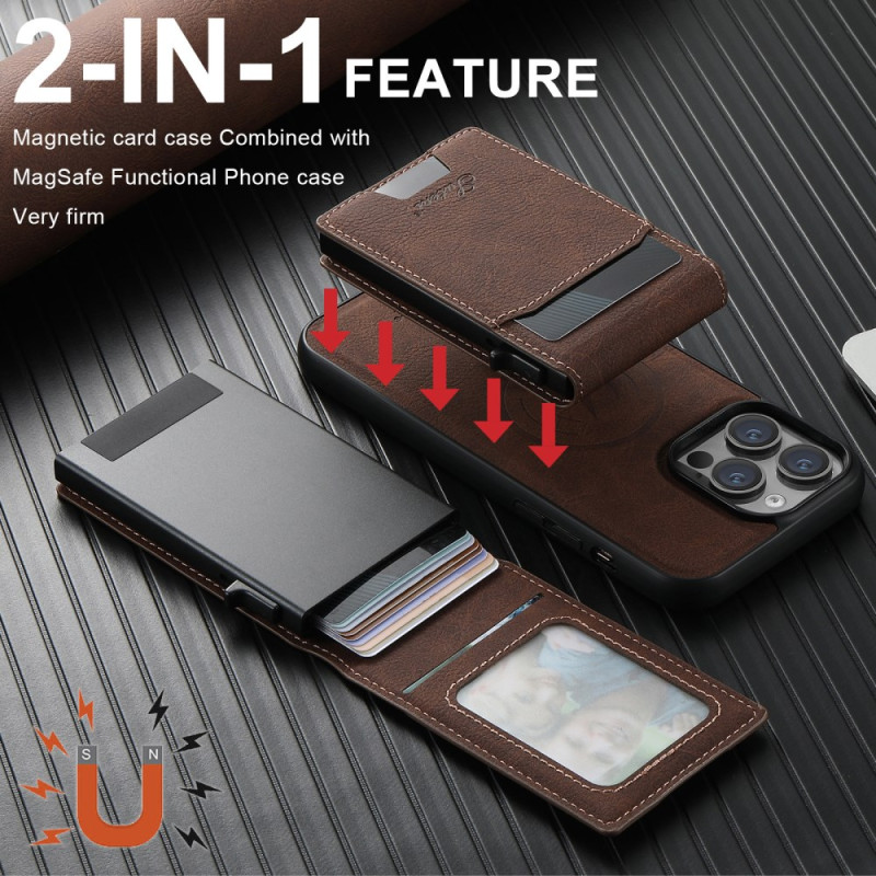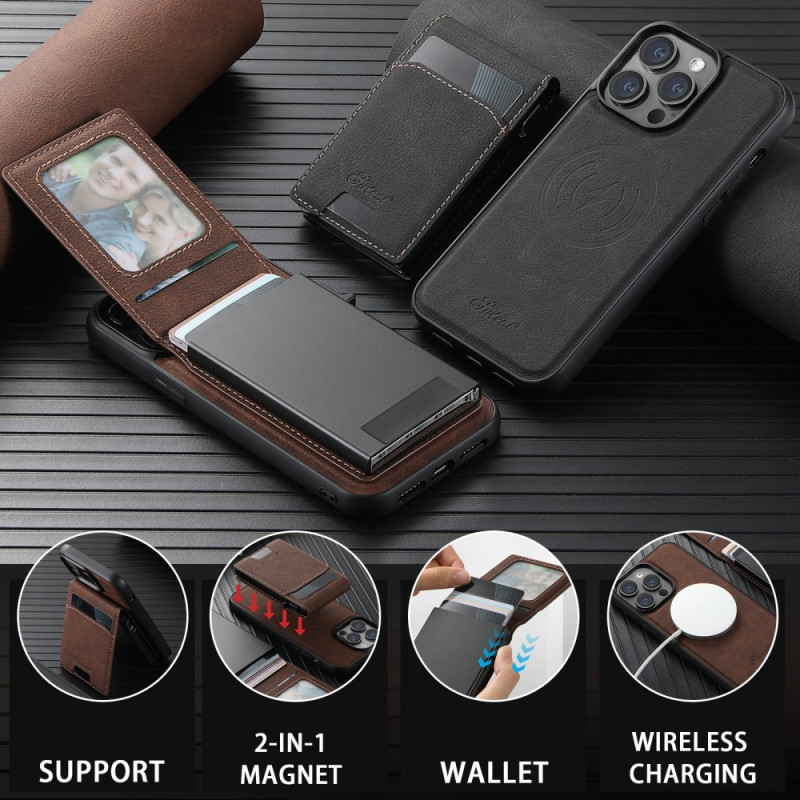 Ontdek de SUTENI case voor iPhone 13 Pro Max: afneembaar 2-in-1 ontwerp met geïntegreerde magnetische kaarthouder voor 6-8 kaarten. Verstelbare standaardfunctie, compatibel met MagSafe draadloos opladen en magnetische autohouder.