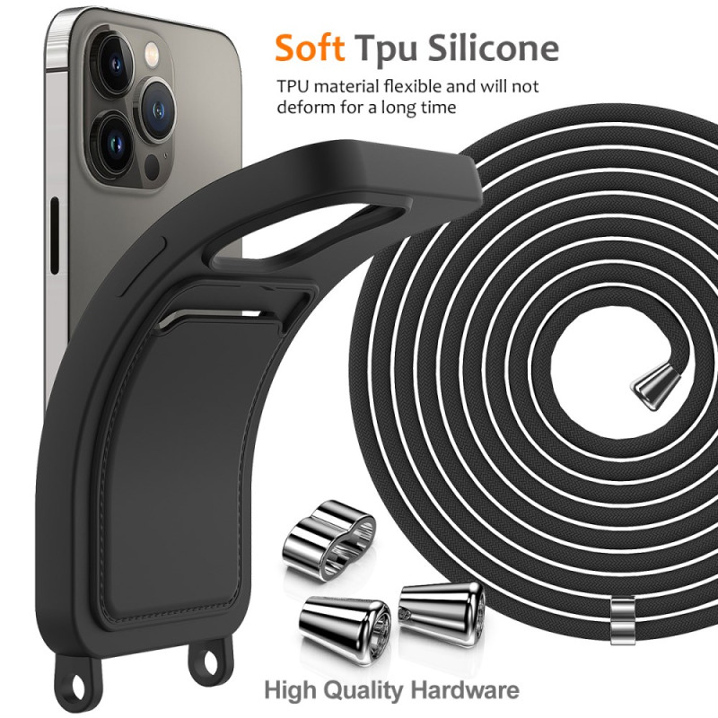 Bescherm je iPhone 13 Pro Max in stijl met deze ultrazachte hoes van vloeibare siliconen. Met een geïntegreerde kaarthouder en een verstelbare schouderriem van 160 cm combineert hij functionaliteit met optimale bescherming voor je dagelijkse leven.