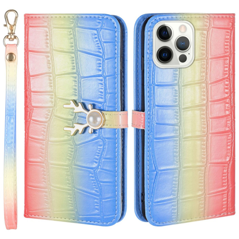 Bescherm je iPhone 13 Pro Max in stijl met deze eersteklas leren hoes. Hij heeft een geraffineerde krokodillenstructuur en combineert stijl en functionaliteit met kaartsleuven, een verstelbare houder en een praktische handriem.