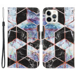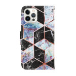 Bescherm je iPhone 13 Pro Max in stijl met deze multifunctionele portemonneehoes met een geraffineerd zwart geometrisch ontwerp. Met geïntegreerde kaartsleuven en een praktische handriem, die ook kan worden gebruikt als standaard voor handsfree gebruik.
