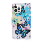 Bescherm je iPhone 13 Pro Max in stijl met deze geraffineerde portemonneehoes. Hij is versierd met een prachtig blauw vlindermotief en combineert stijl en functionaliteit met zijn meerdere kaartsleuven, praktische handriem en geïntegreerde houder.