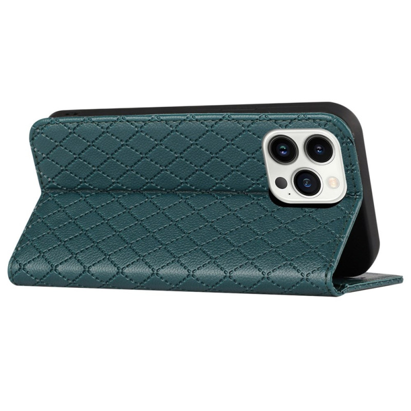 Bescherm je iPhone 13 Pro Max in stijl met deze multifunctionele portemonneehoes. Hij heeft een verfijnde lychee-textuur en een ruitpatroon in reliëf en combineert stijl en functionaliteit met kaartsleuven en geïntegreerde RFID-bescherming.