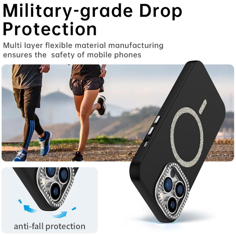 Bescherm je iPhone 13 Pro in stijl met dit MagSafe-compatibele hoesje. Het glinsterende frame met strass-steentjes en de glitterafwerking geven je telefoon een luxe uitstraling en bieden optimale bescherming.