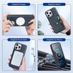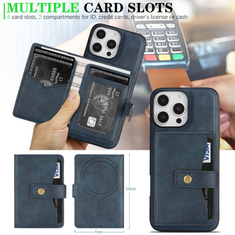 Multifunctionele hoes voor iPhone 13 Pro die bescherming, functionaliteit en elegantie combineert. MagSafe-compatibel met afneembare magnetische kaarthouder en geïntegreerde verstelbare standaard. Perfect om je pasjes in op te bergen en handsfree te kijken.