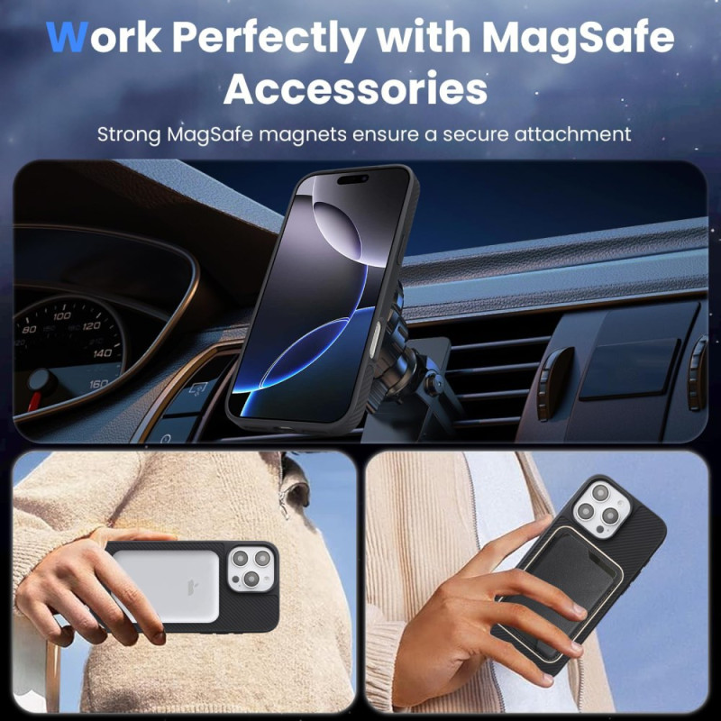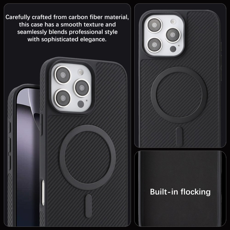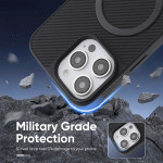 Bescherm je iPhone 13 Pro in stijl met deze eersteklas hoes met carbontextuur. Hij is compatibel met MagSafe en biedt optimale bescherming met verhoogde randen voor de camera en effectieve schokabsorptie.