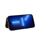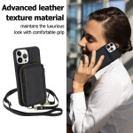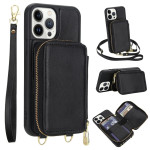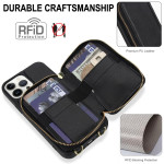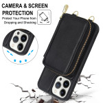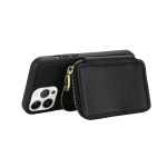 Stijlvolle en veilige 2-in-1 portemonneehoes voor iPhone 13 Pro. Geïntegreerde RFID-bescherming, ritssluiting voor het opbergen van pasjes en geld, video-ondersteuningsfunctie en afneembare schouderriem voor handsfree dagelijks gebruik.