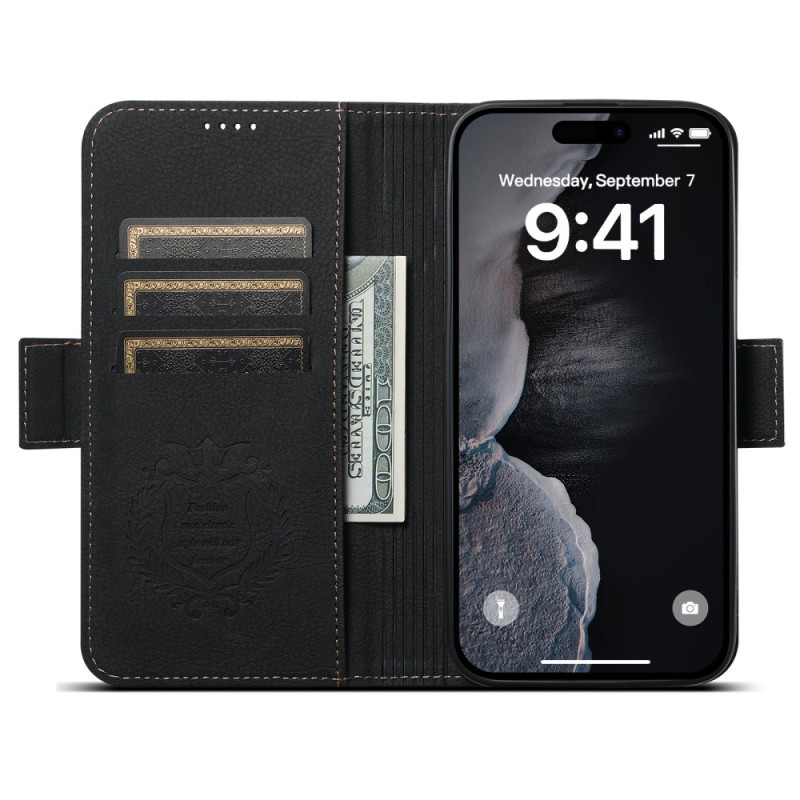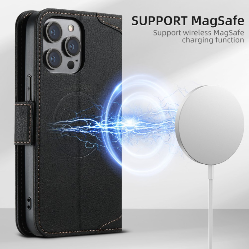Découvrez l'étui SUTENI pour iPhone 13 Pro : une protection élégante avec texture litchi, support intégré, compartiments pour cartes et compatibilité MagSafe. Alliez style professionnel et fonctionnalité au quotidien avec cet accessoire indispensable.