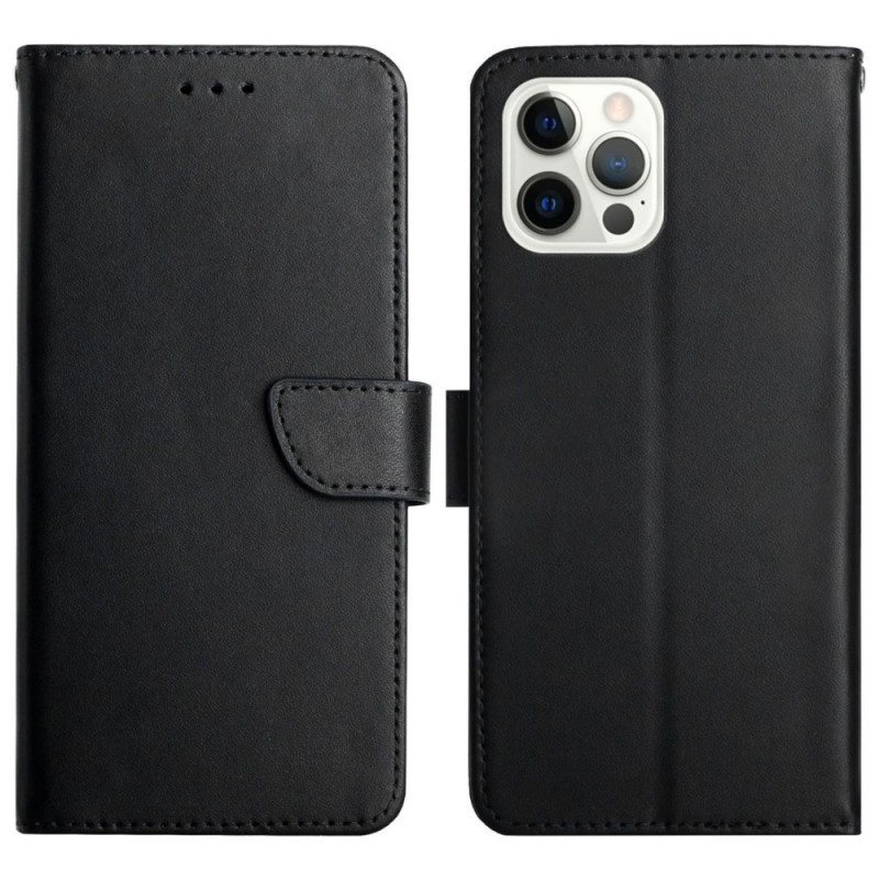 Elegante portemonneehoes van echt leer met verfijnde nappa-textuur voor iPhone 13 Pro. Combineert eersteklas bescherming en functionaliteit met de geïntegreerde standaard, ultrasterke magnetische sluiting en meerdere kaartsleuven.