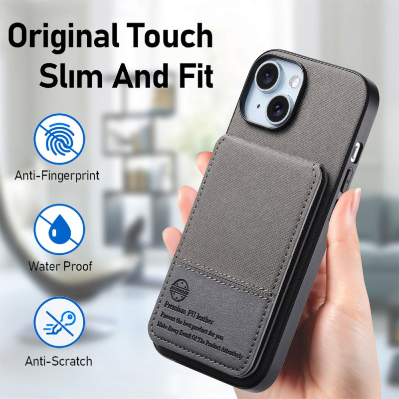 Deze hoes voor iPhone 13 combineert stijl en functionaliteit. Hij is gemaakt van kwaliteitsmaterialen en biedt RFID-bescherming, een verstelbare standaard en een veilige kaarthouder. Het elegante, compacte ontwerp maakt het een praktische, modieuze accessoire voor je telefoon.