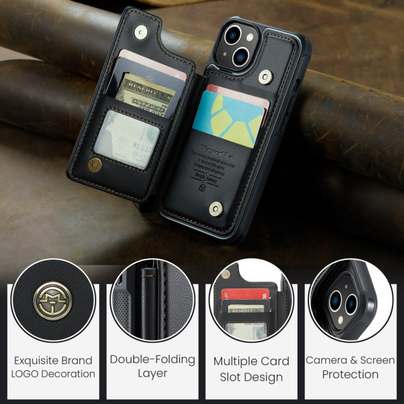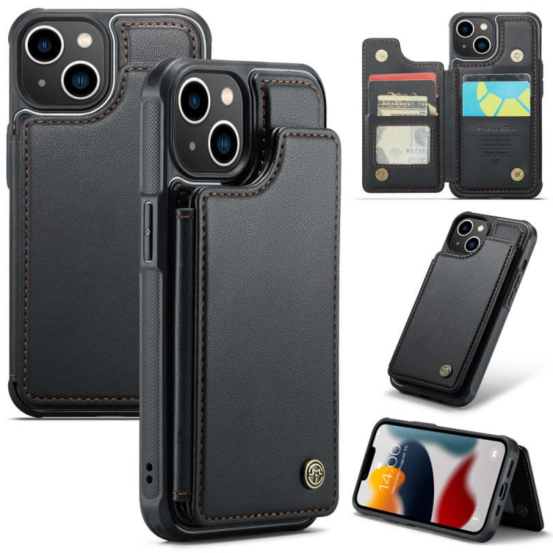 Ontdek onze topklasse beschermhoes voor iPhone 13. Hij is gemaakt van PU leer met textuur en duurzaam TPU en biedt RFID-bescherming, kaartsleuven, een dubbele magneetsluiting en een standaardfunctie. Met opstaande randen om het scherm en de camera te beschermen, combineert deze hoes functionaliteit en stijl voor praktisch dagelijks gebruik.