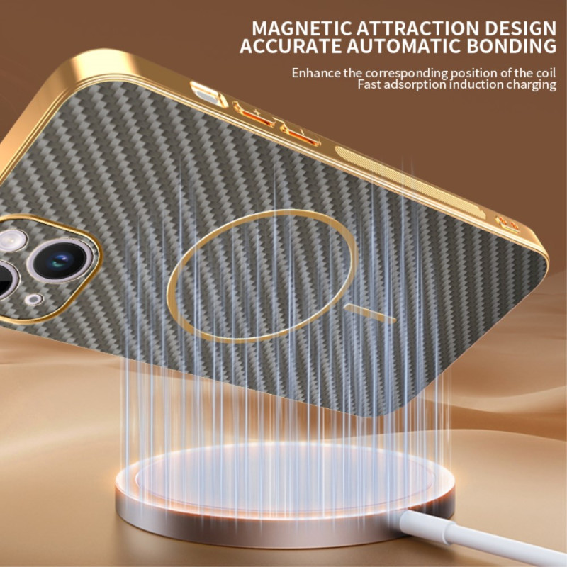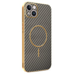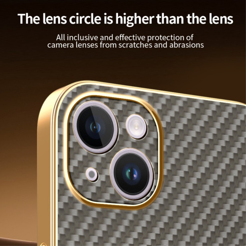 Ontdek onze stijlvolle en duurzame beschermhoes voor de iPhone 14 Plus. Hij is gemaakt van flexibel TPU met een gegalvaniseerde afwerking en koolstofvezeltextuur en biedt uitstekende schokabsorptie en een aantrekkelijk ontwerp. Met opstaande randen voor scherm- en camerabescherming combineert deze hoes functionaliteit met stijl.