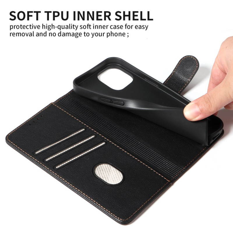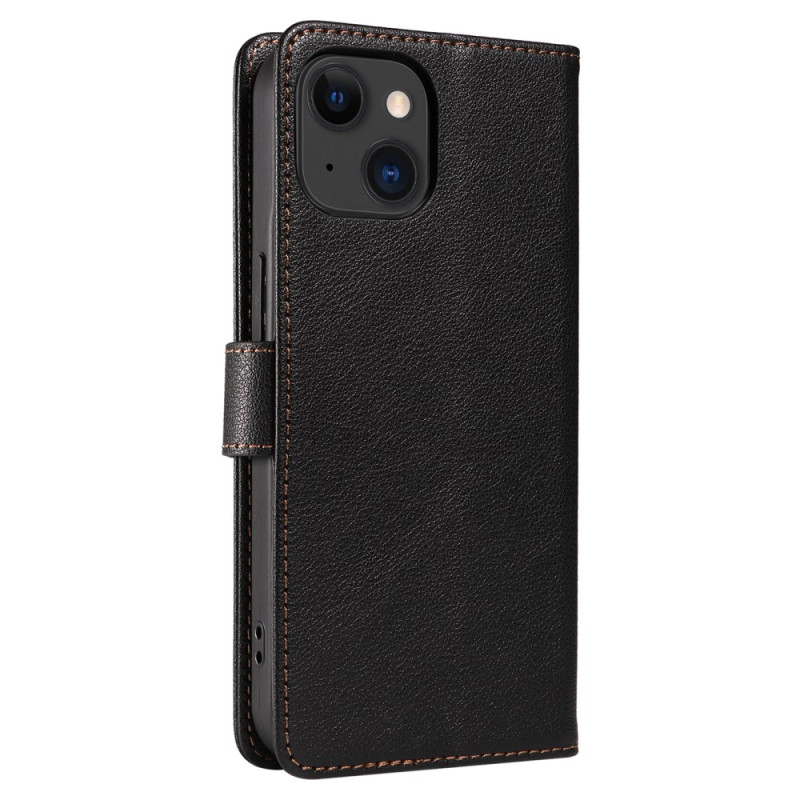Découvrez notre housse portefeuille en cuir pour iPhone 14 Plus. Dotée d'une texture litchi élégante, elle offre une protection RFID, des rangements pratiques et une fonction support. Fabriquée en cuir PU de qualité supérieure et en TPU, elle assure durabilité et style tout en protégeant votre téléphone.