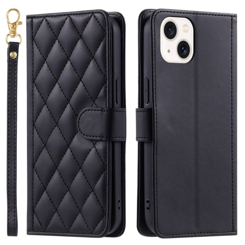 Découvrez notre étui portefeuille en cuir PU pour iPhone 14 Plus. Doté d'un design élégant avec un motif en losange, il offre une protection complète et des fonctionnalités pratiques. Avec ses multiples fentes pour cartes, sa poche pour monnaie et sa dragonne assortie, cet étui allie style et fonctionnalité pour votre téléphone.