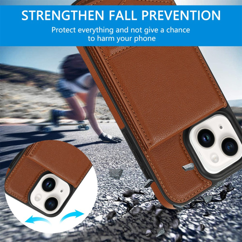 Ontdek onze elegante beschermhoes voor de iPhone 14 Plus. Hij is gemaakt van TPU en bekleed met hoogwaardig PU-leer en biedt volledige bescherming tegen stoten en krassen. Met een verticale kaarthouder met RFID-blokkeringstechnologie en een multifunctionele houder combineert deze hoes stijl en functionaliteit voor optimaal dagelijks gebruik.