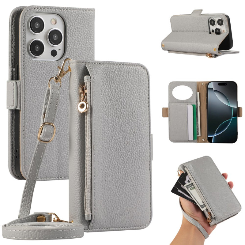Multifunctionele portemonneehoes die bescherming tegen stoten en elegantie combineert. Voorzien van een geïntegreerde spiegel, meerdere kaartsleuven, RFID-technologie en afneembare schouderriemen voor handsfree dagelijks gebruik.