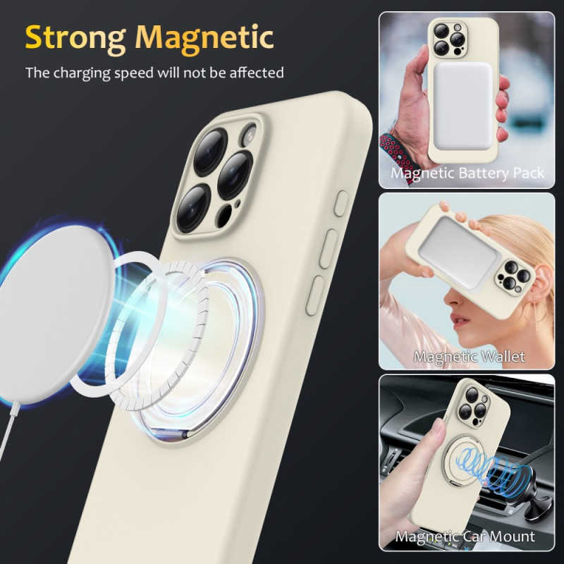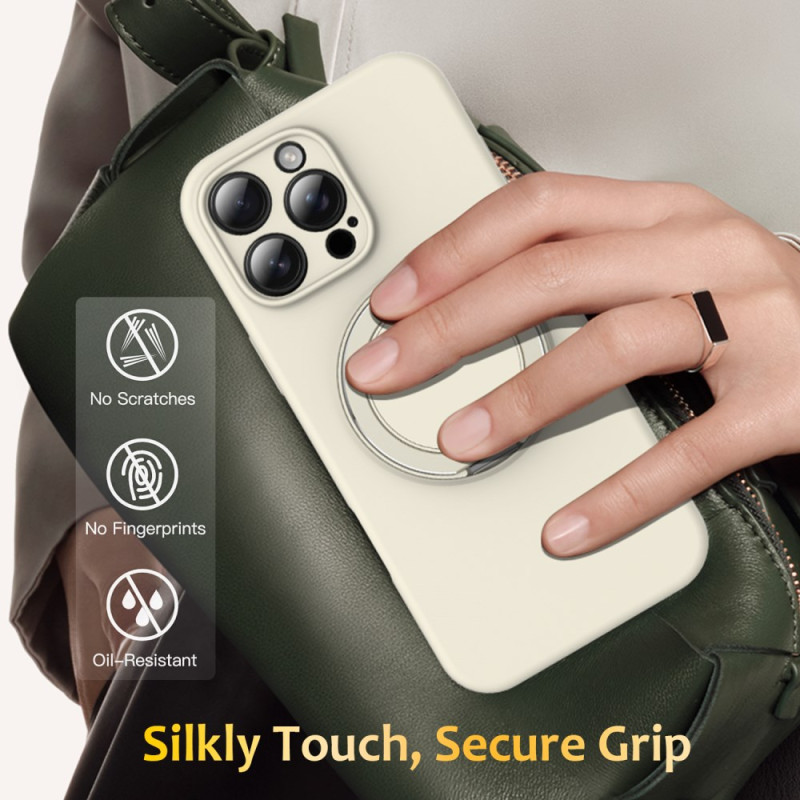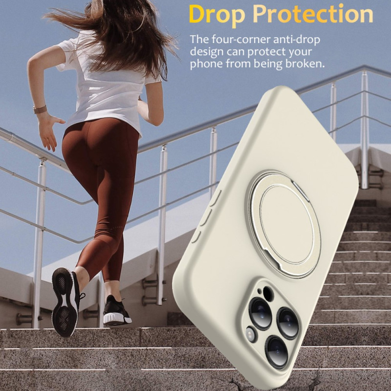 Bescherm je iPhone 14 Pro Max met deze hoogwaardige MagSafe-compatibele hoes. Hij is voorzien van een roterende metalen ring voor ondersteuning en combineert versterkte bescherming met alledaags gebruiksgemak. Het elegante ontwerp combineert hard pc en flexibel silicone.