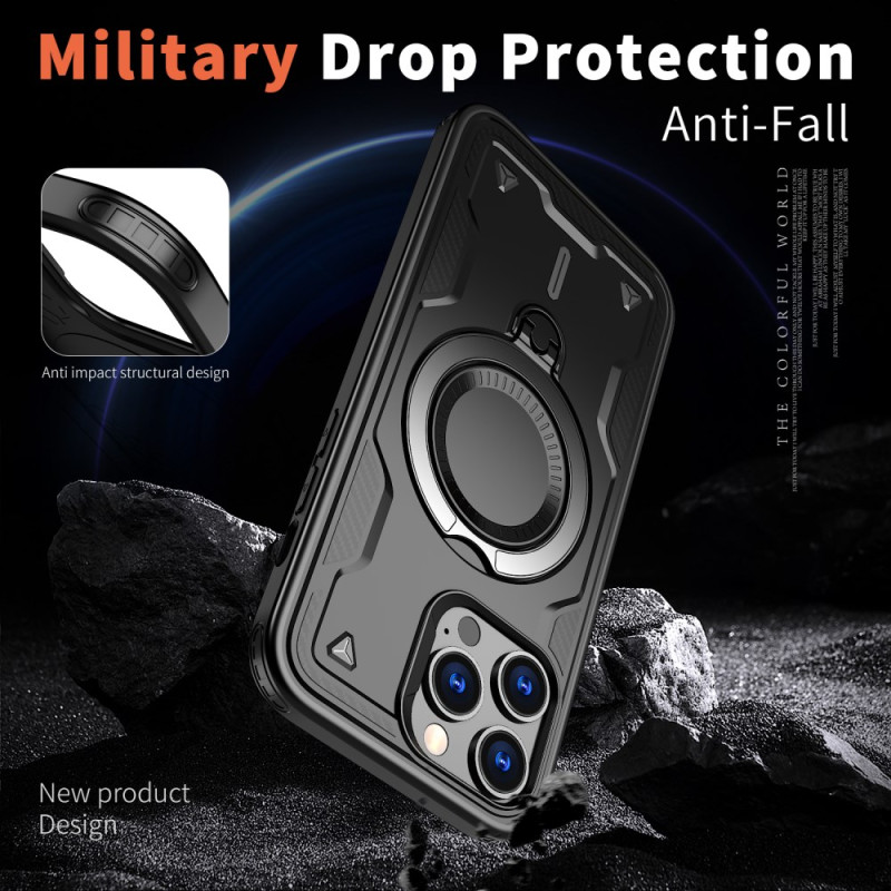 Bescherm je iPhone 14 Pro Max met deze robuuste PC+TPU militaire hoes, compatibel met MagSafe. Hij heeft een 360° draaibare standaard en biedt volledige bescherming tegen stoten en vallen, terwijl hij de ultieme handsfree ervaring biedt.