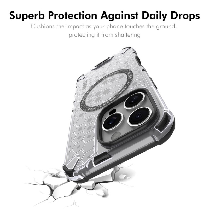 Complete 2-in-1 bescherming voor je iPhone 14 Pro Max: magnetische case met elegant honingraatontwerp en 9H gehard glazen screenprotector. MagSafe-compatibel, schok- en krasbestendig voor optimale veiligheid bij dagelijks gebruik.