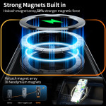 Transparante PC case van hoge kwaliteit voor iPhone 14 Pro Max. Geïntegreerde 360° roterende magnetische houder voor optimaal handsfree kijken. MagSafe-compatibel met 38 neodymiummagneten voor superieure magnetische kracht. Gecertificeerde valbescherming van militaire kwaliteit.