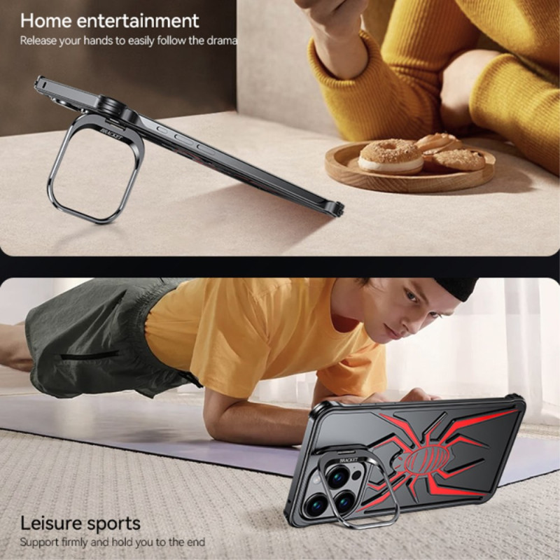 Protégez votre iPhone 14 Pro Max avec style grâce à cette coque au design spider unique. Dotée d'airbags aux quatre coins pour une protection anti-choc optimale, elle intègre un support pliable pour vos vidéos et favorise la dissipation thermique lors du gaming.