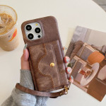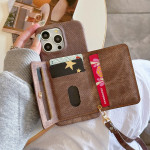 Hoogwaardige PU-lederen hoes met structuur voor iPhone 14 Pro. Praktisch drievoudig ontwerp met kaartsleuven, geïntegreerde standaardfunctie en make-upspiegel. Camerabeveiliging en leren handband voor comfortabel, veilig dagelijks gebruik.