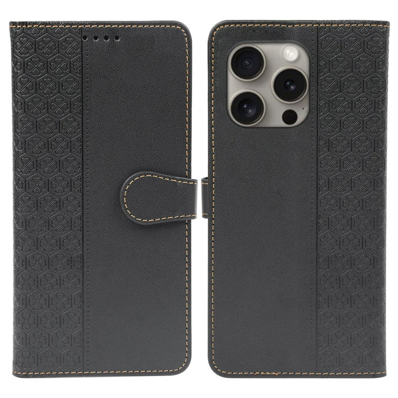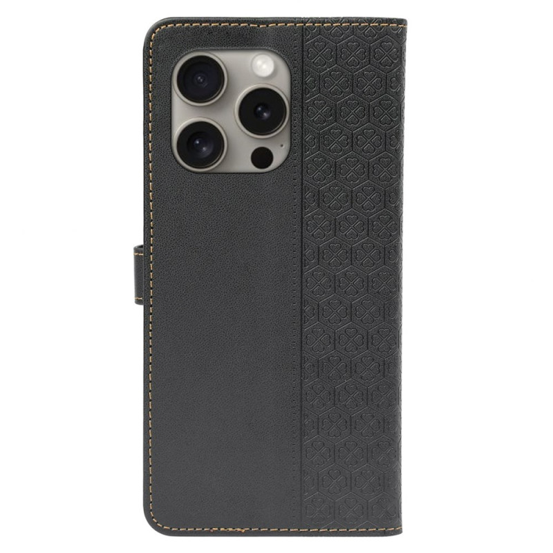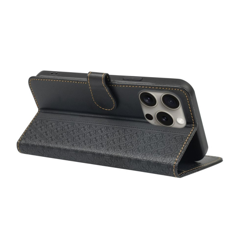 Ontdek onze elegante lederen hoes voor iPhone 14 Pro, die stijl en functionaliteit combineert. Met zijn klavertjevier-design en praktische magneetsluiting biedt deze case volledige bescherming en opbergruimte voor je pasjes. Je kunt ook gebruikmaken van de standaardfunctie voor comfortabel kijken.