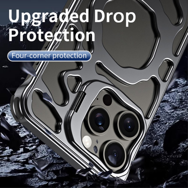 Ontdek onze magnetische aluminiumlegering hoes voor iPhone 14 Pro. Het unieke opengewerkte ontwerp biedt volledige bescherming, efficiënte warmteafvoer en een onzichtbare geïntegreerde standaard. Deze hoes is compatibel met MagSafe draadloos opladen en combineert functionaliteit en stijl voor de ultieme gebruikerservaring.