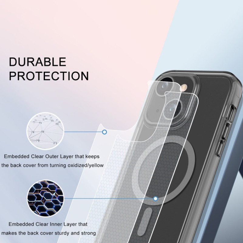 Ontdek onze 3-in-1 magnetische hoes voor iPhone 14. Hij is gemaakt van hoogwaardig PC en TPU en biedt volledige bescherming tegen stoten en vallen. Met zijn geïntegreerde screenprotector en MagSafe-compatibiliteit combineert deze case functionaliteit en elegantie voor je toestel.
